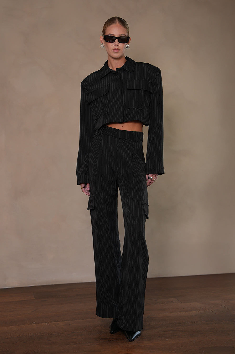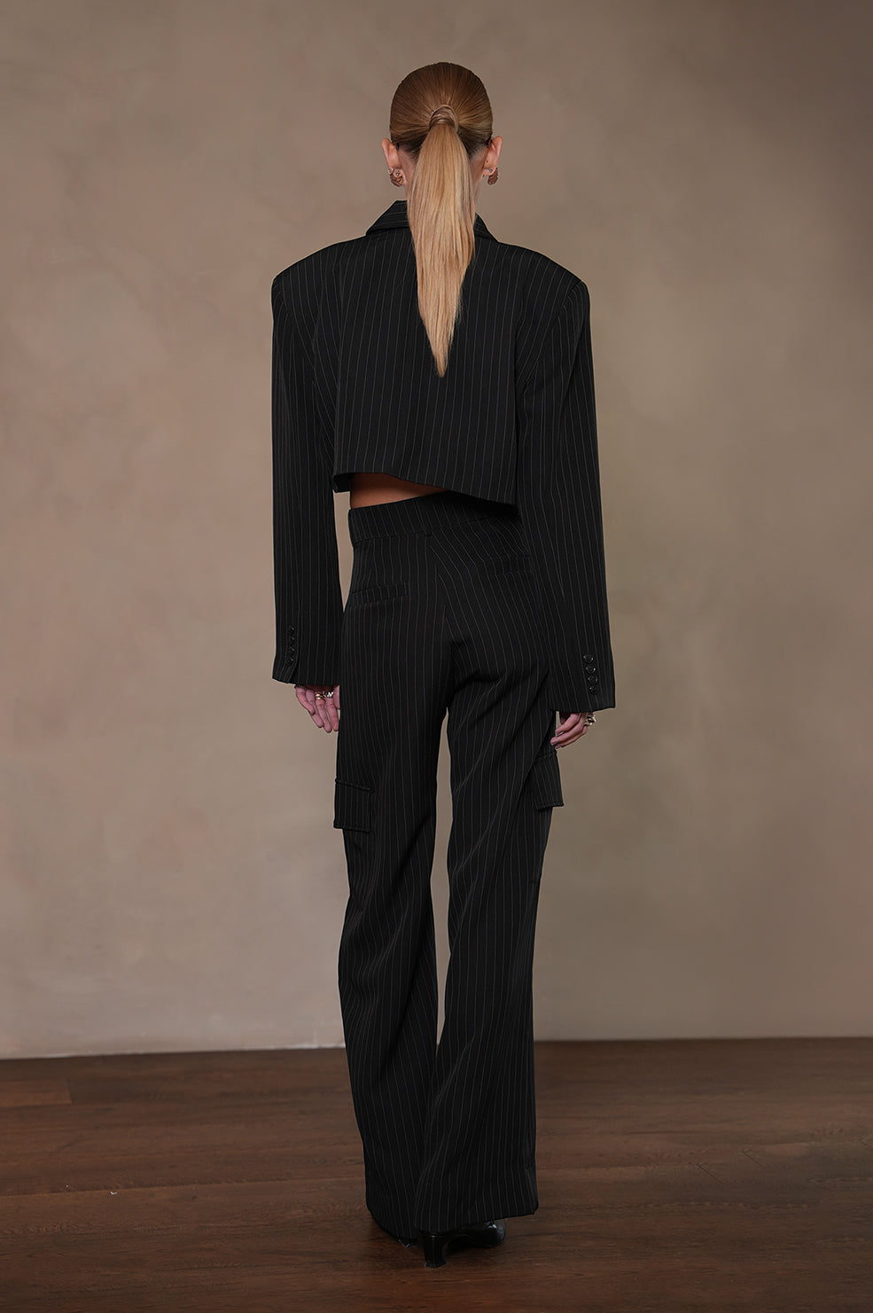 Our Clarice Crop Jacket is designed with a cropped silhouette, and structured detailing. A pointed collar, enlarged flap pockets, and front button closure create a sleek, sophisticated look. Padded shoulders and lining add a layer of comfort. Style confidently with this polished jacket.