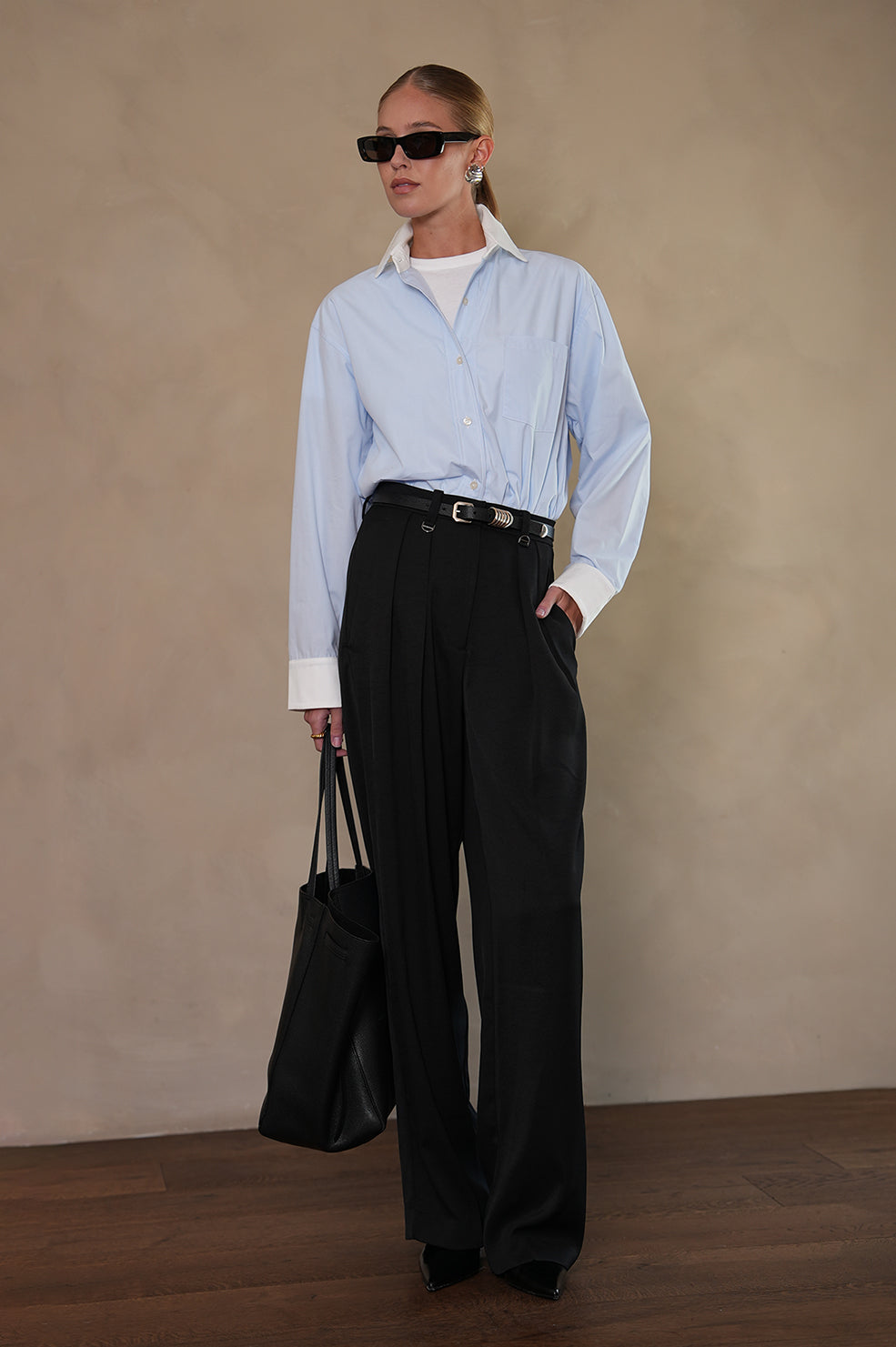 Indulge in the effortless elegance of the Kristen Shirt. With its two tone blue and white design, this button down exudes sophistication and style. Perfect for any occasion, it is a must-have in your wardrobe.