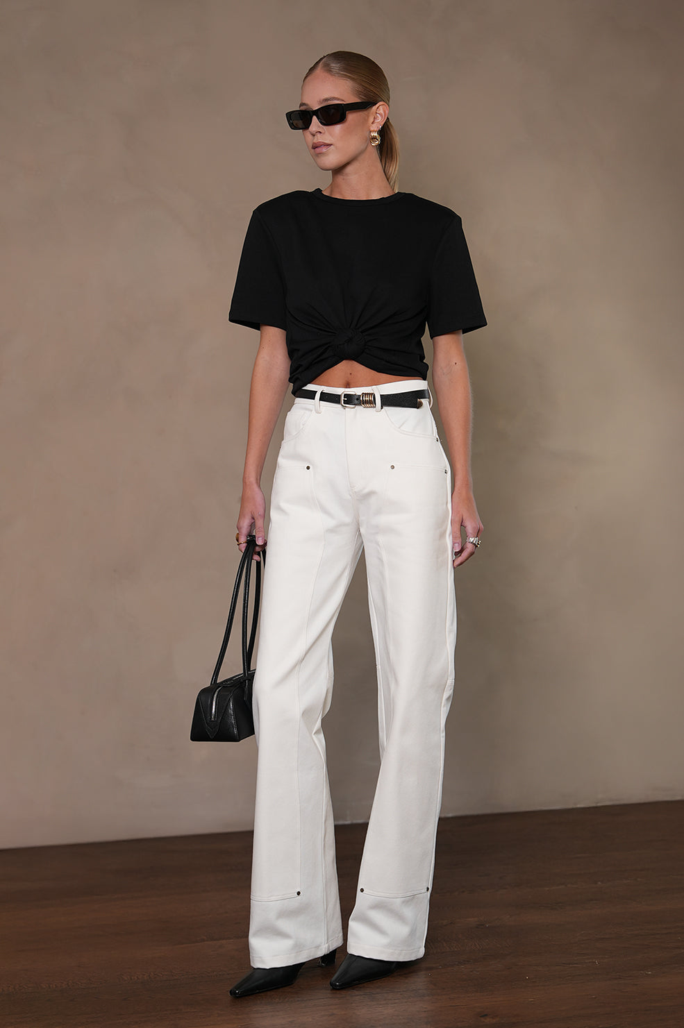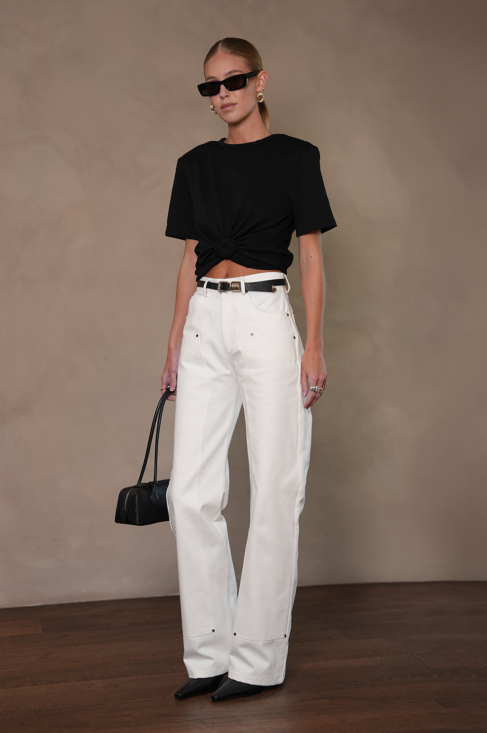 Introducing the May Tee, a perfect addition to your wardrobe. This elevated tshirt showcases removable shoulder pads and a knot detail for a touch of sophistication. The subtle shoulder pads create a flattering silhouette, while the luxurious fabric exudes exclusivity. Upgrade your style with the May Tee.