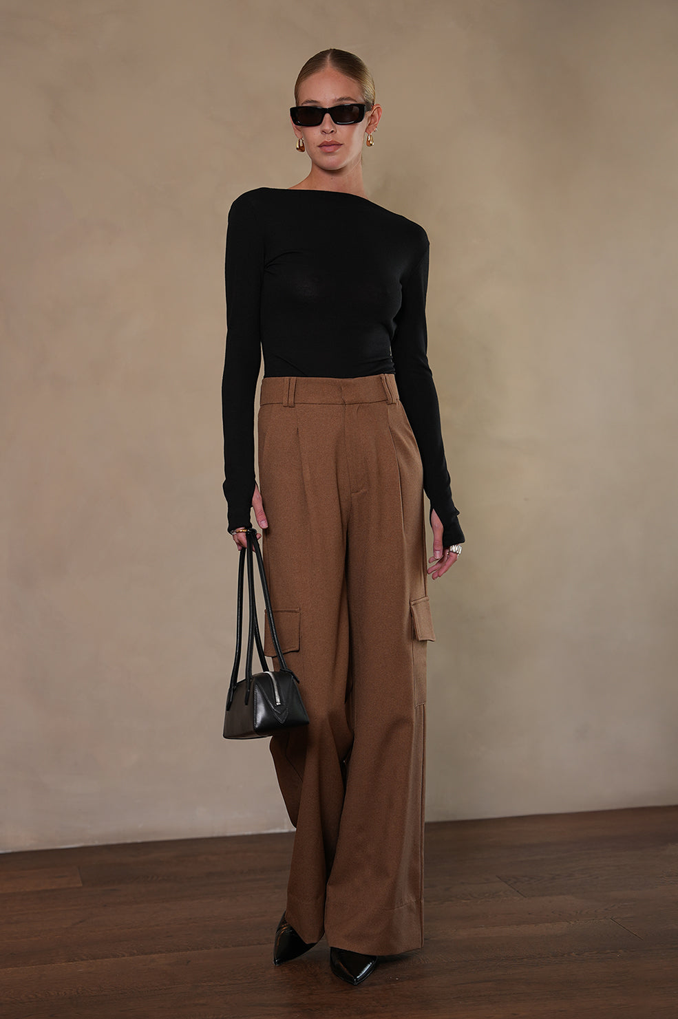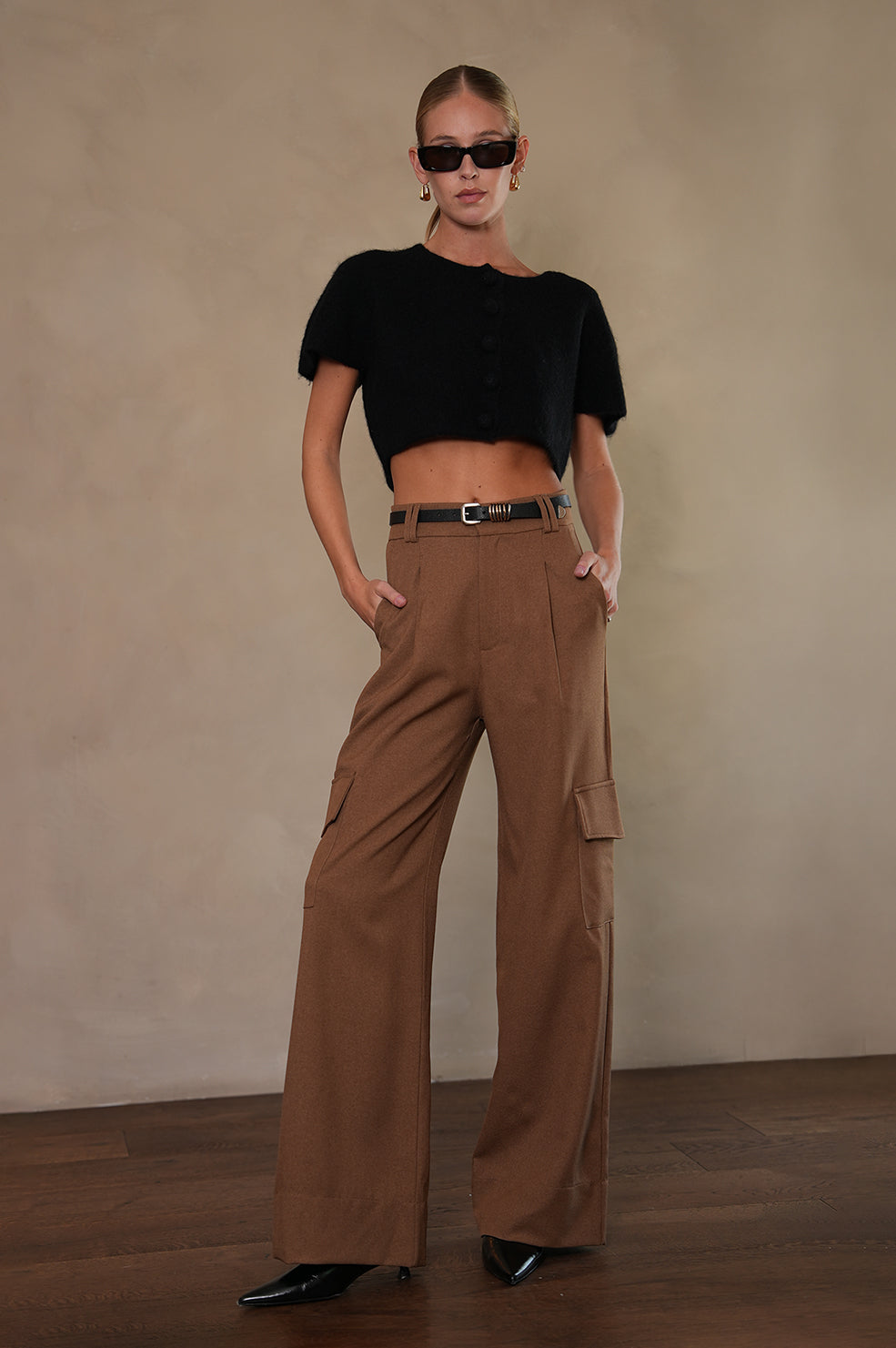 Introducing the Piper Pant, the epitome of luxury and style. These camel cargo pants are both functional and fashionable, perfect for any occasion. With a versatile camel color, these pants will elevate any outfit and provide comfort and sophistication.