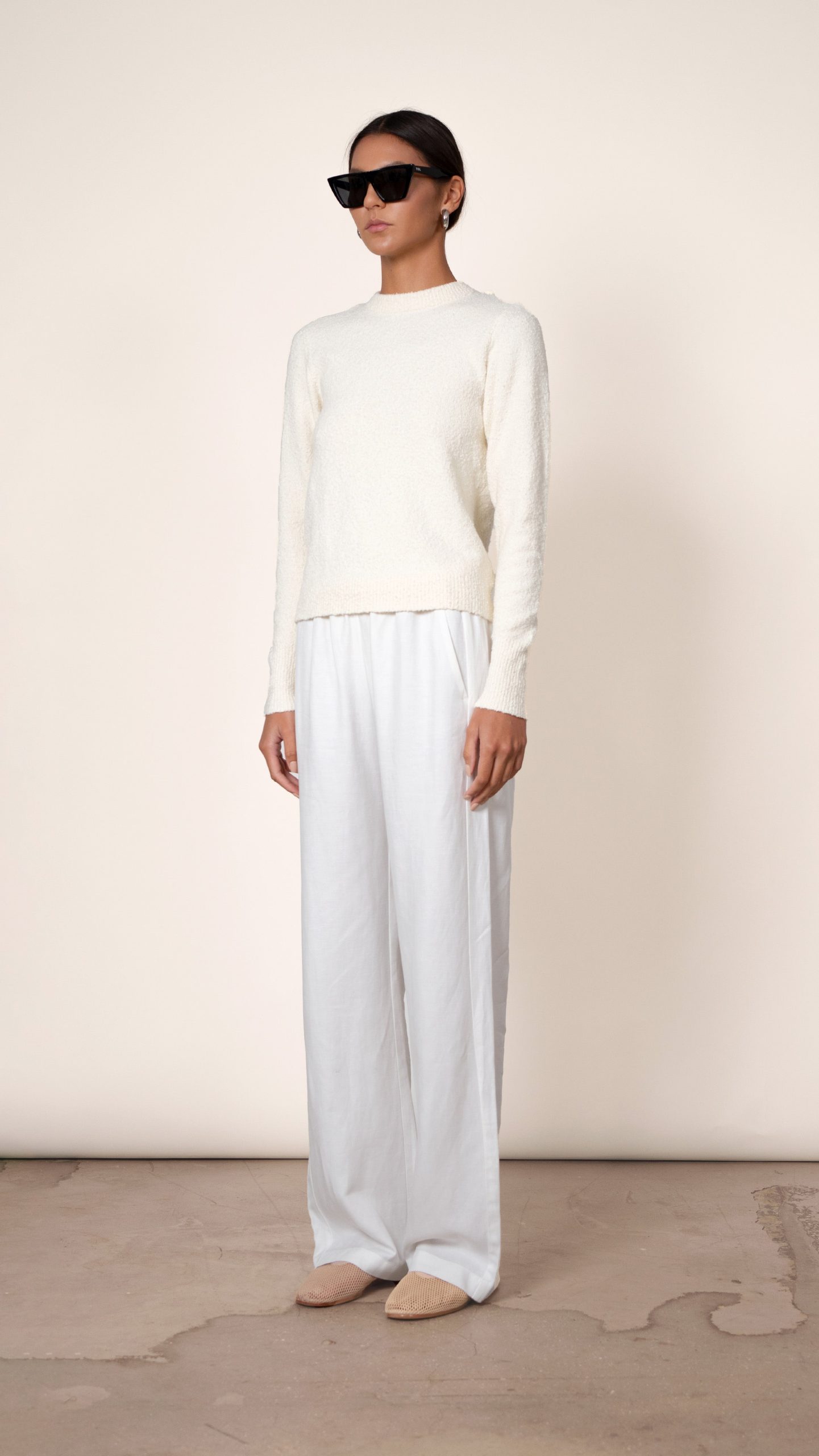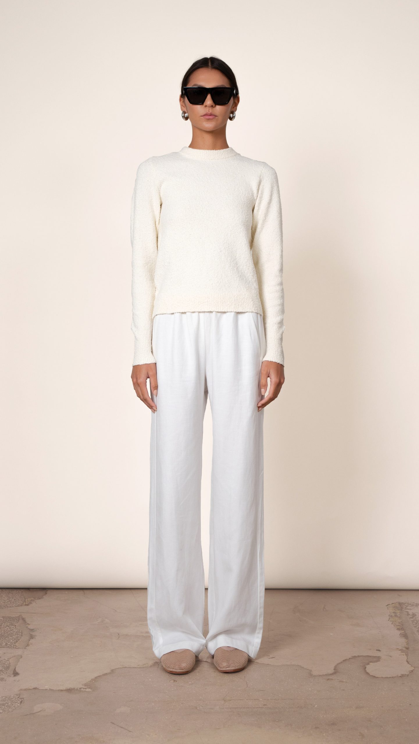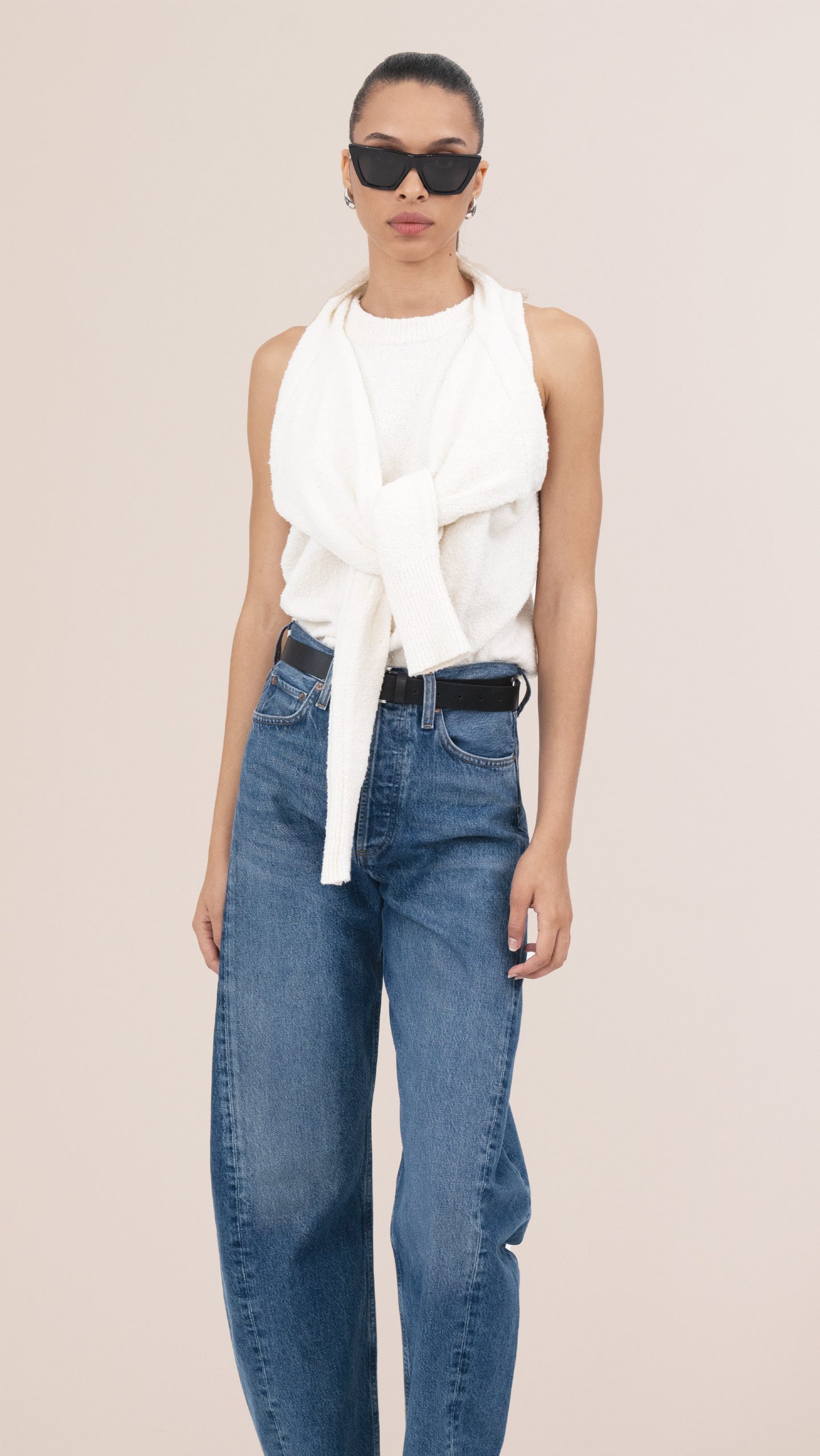 Add versatility and style to your wardrobe with our Wrapped Sweater. Wear it in two fashionable ways – as a halter neck with a unique cutout back, or tie the long sleeves in front for a chic look. Made from soft bouclé, this cozy sweater is the perfect transition piece for any closet.